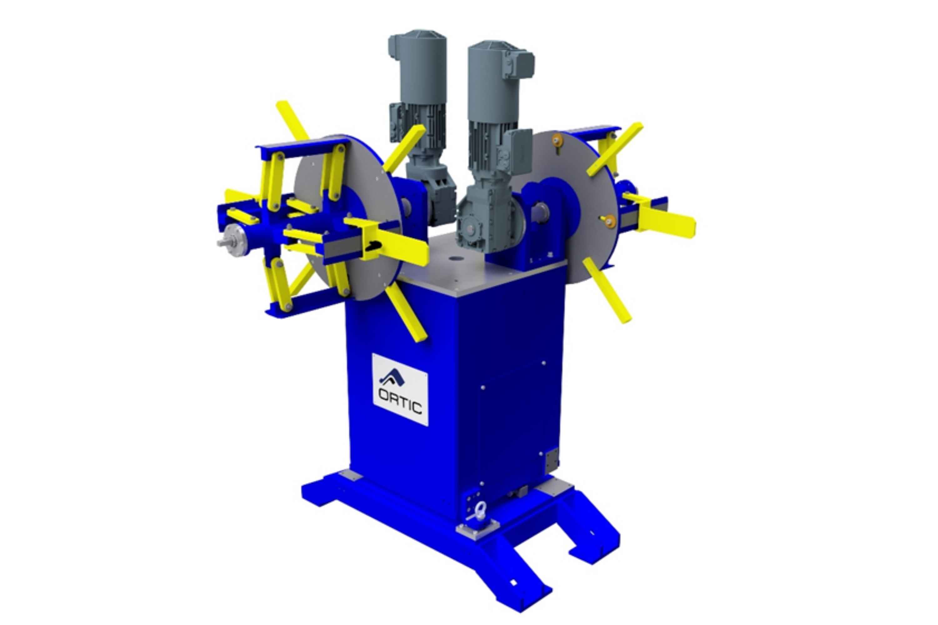 ORTIC dubbelhaspel på 2x500 kg är en beprövad och pålitlig lösning för hantering av mindre profiler och tunnare material som kräver smalare bandbredd. Haspelns trummor är motordrivna för att säkerställa en jämn leverans till slingstyrningen, men kan även fås i en manuell version med justerbar broms. För övriga justeringar, som rotation av ny coil och expansion för fastsättning, sker hanteringen manuellt.